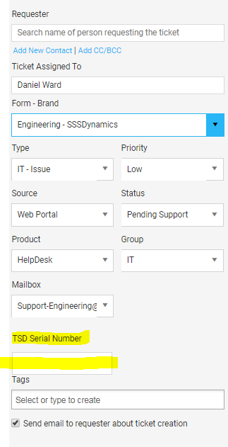 10/17/2019 - Helpdesk Change - Engineering form - Add "serial #
