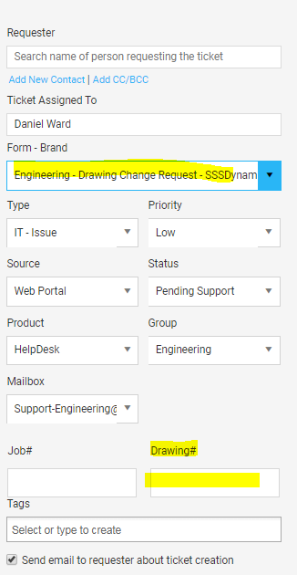 "Engineering Drawing Change Request" Custom Field "Drawing#" is no longer required to be filled out to close ticket.
